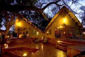 The dining and bar areas are on raised on multi-level wooden decks that wind around African ebony and sycamore fig trees. It is here where guests gather. The lounge and dining tent has beautiful big sofas, with breathtaking views over the lagoon. and There is a well-stocked library and a study.